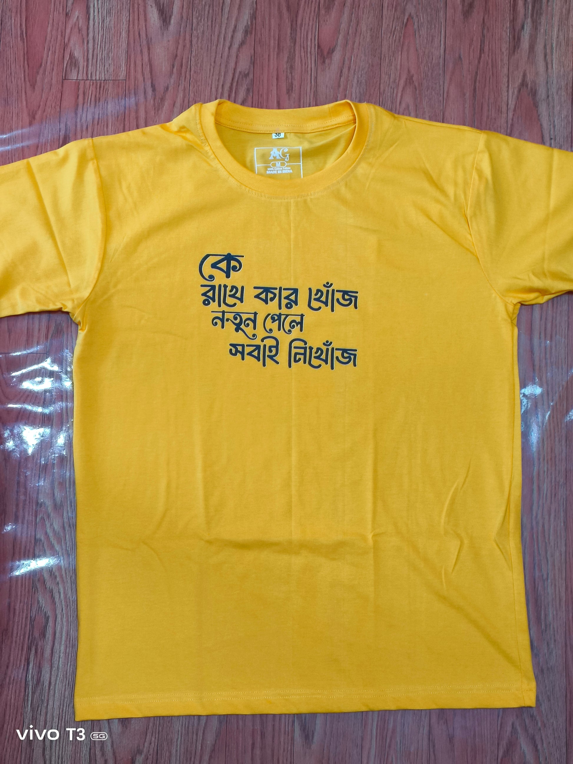 Experience authentic Bengali culture with our premium Typography T-shirt. Crafted from 100% cotton for exceptional comfort and breathability, this shirt features high-quality printed Bengali typography that maintains its vibrant appearance through multiple washes. The superior fabric construction ensures durability while providing all-day comfort, making it perfect for casual outings or cultural events.