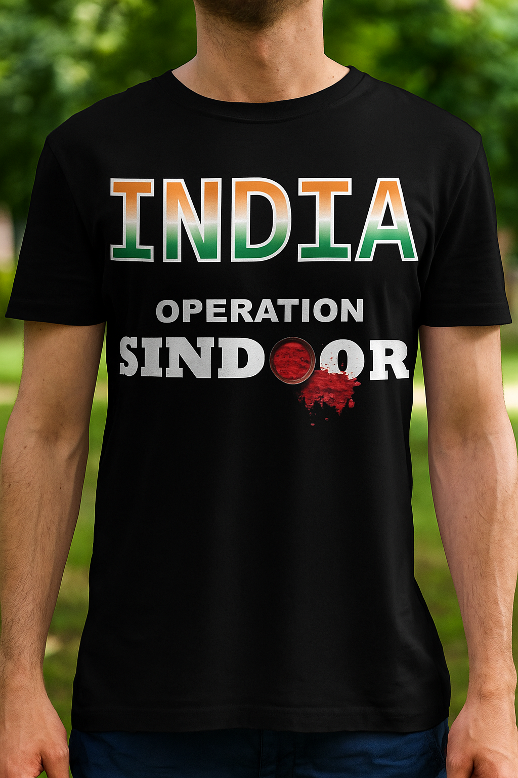 The Operation Sindoor T-shirt is crafted from premium cotton, offering exceptional breathability and comfort for daily wear. Its soft, natural fabric ensures durability and a gentle touch on the skin, making it suitable for all-day use. Featuring a distinctive design that honors cultural symbolism, this T-shirt blends tradition with contemporary style, ideal for those seeking both quality and meaningful expression in their apparel.